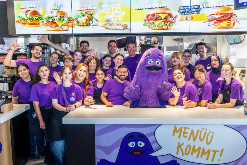Mit seinem großen Herzen und jeder Menge Kuschelfaktor brachte er beste Stimmung an den Jakominiplatz und gleich 500 gratis Grimace Shakes für unsere Gäste.